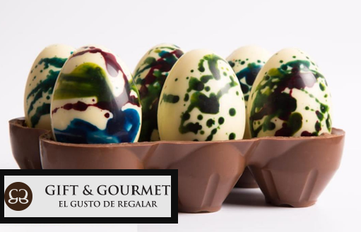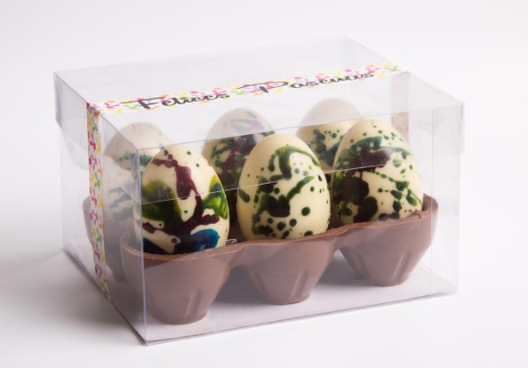 Huevera de chocolate con 6 huevitos de chocolate, 360g en total.