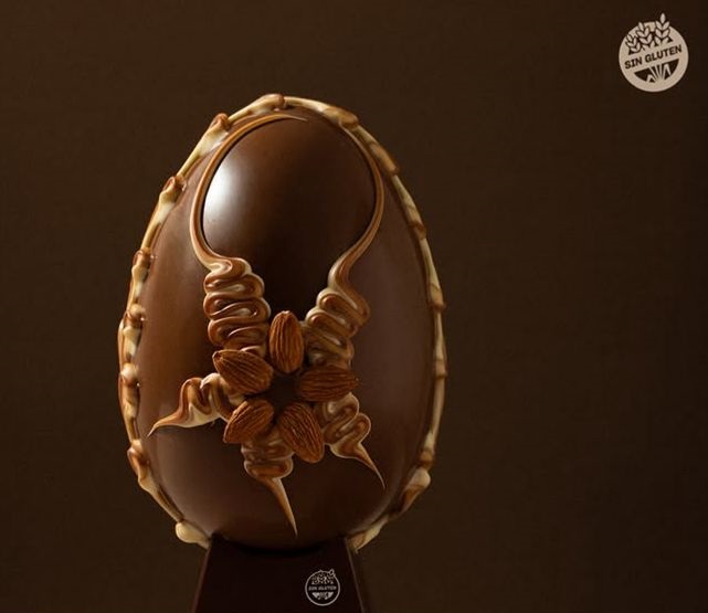 Huevo de chocolate decorado artesanalmente. Tiene certificación sin TACC, libres de gluten.